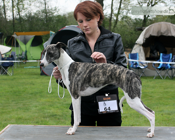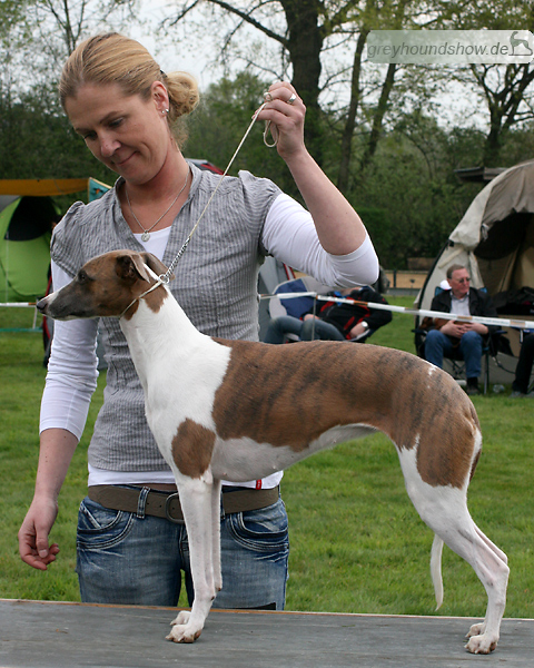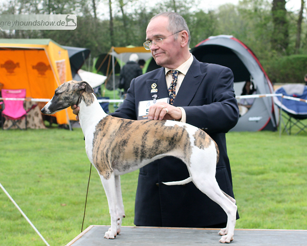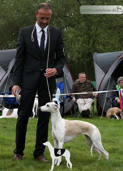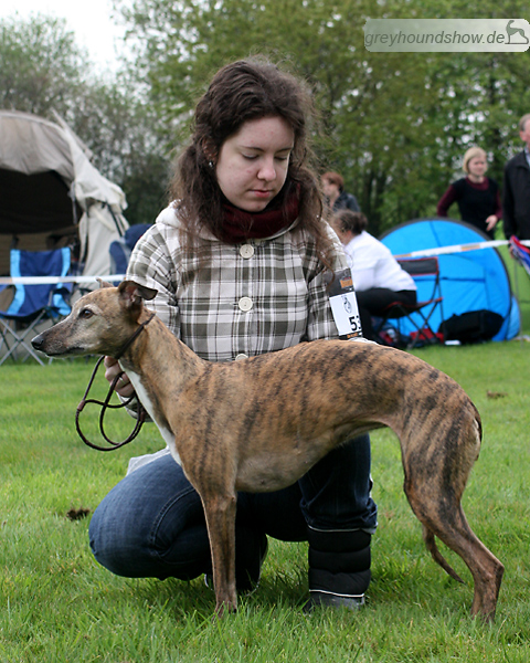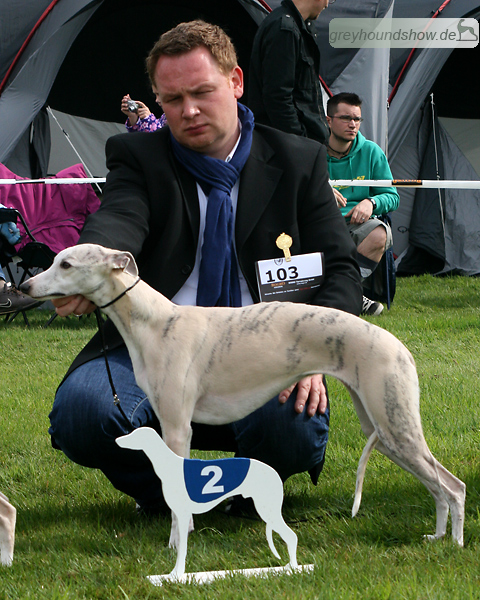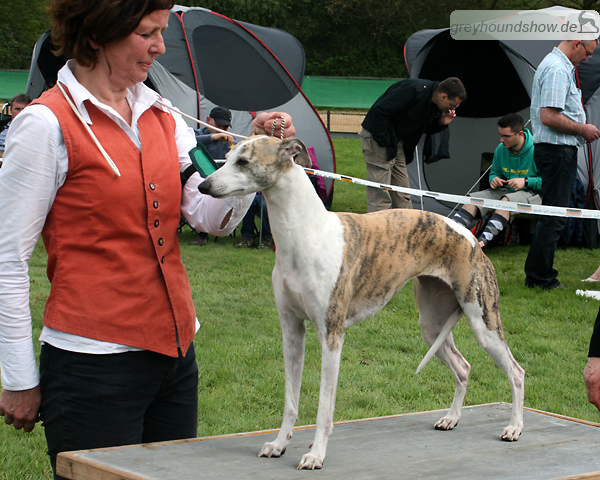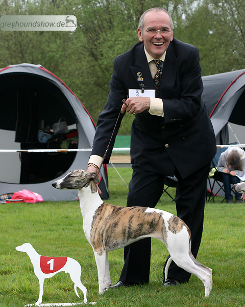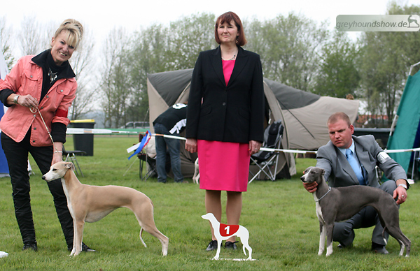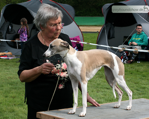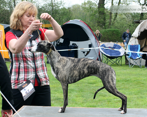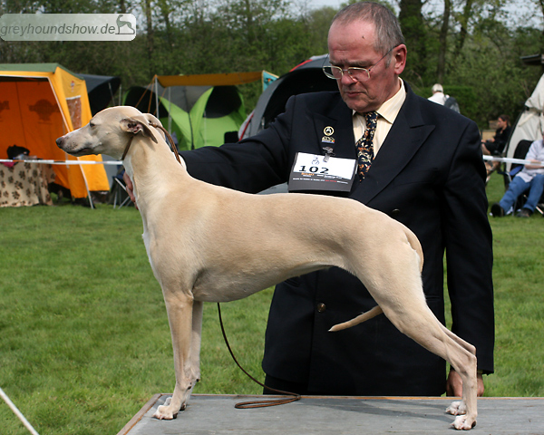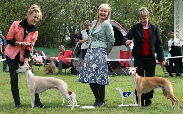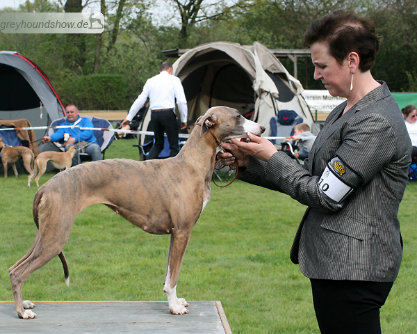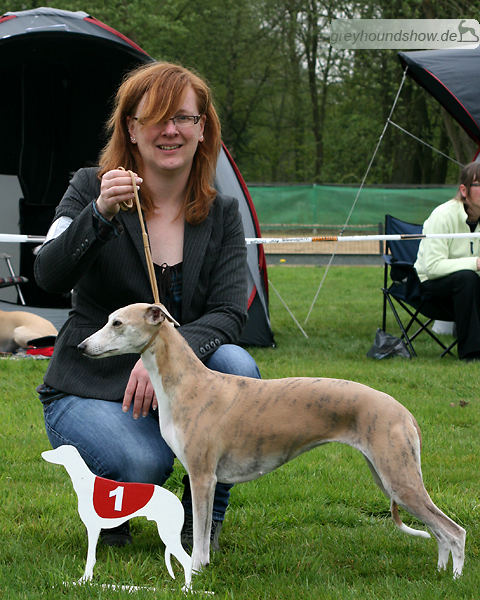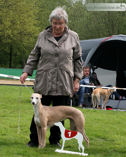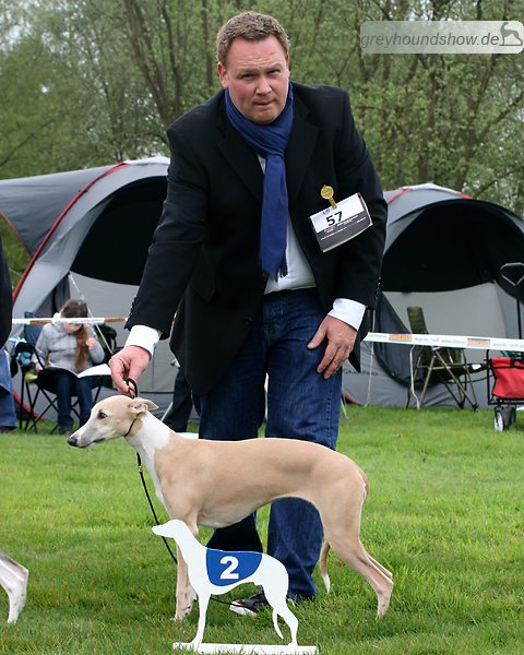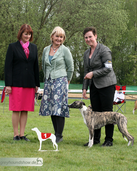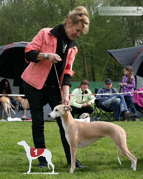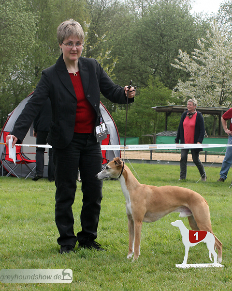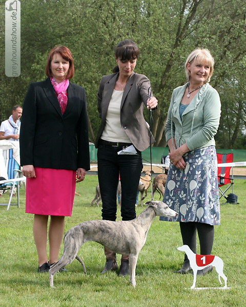 112 Whippets waren zur diesjährigen Whippet-Jahresausstellung am 29.04.2012 in Münster gemeldet. Die Hündinnen wurden von Miss Julie Meakin (Oakbark), die Rüden von Mrs. Cathie Brown (Bluestreak) gerichtet.
