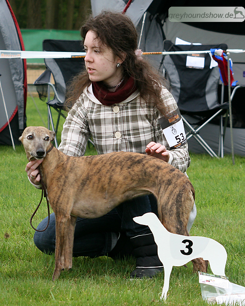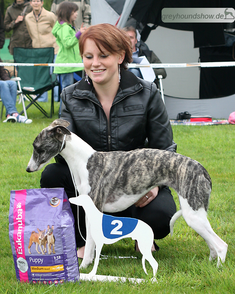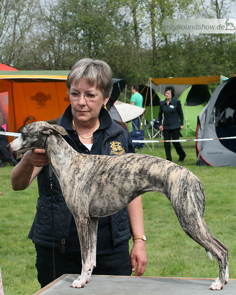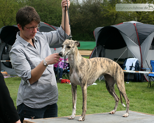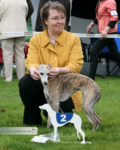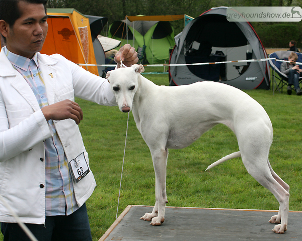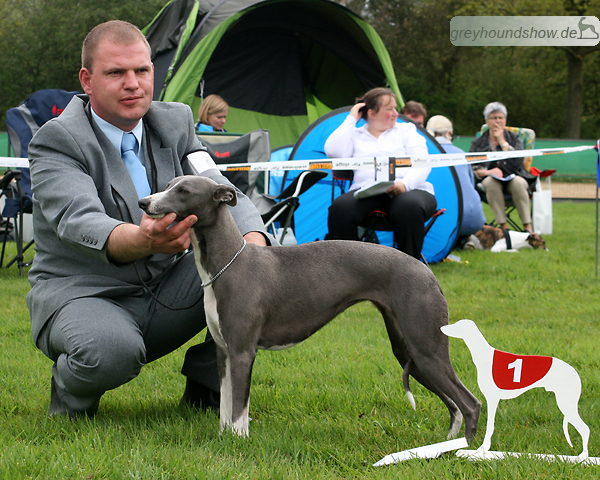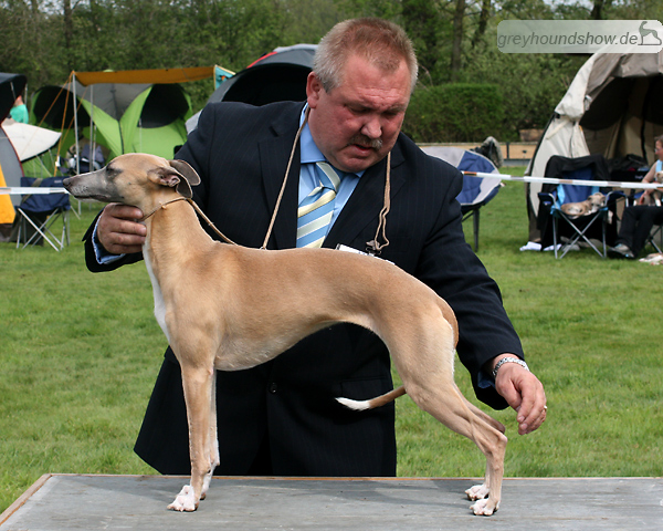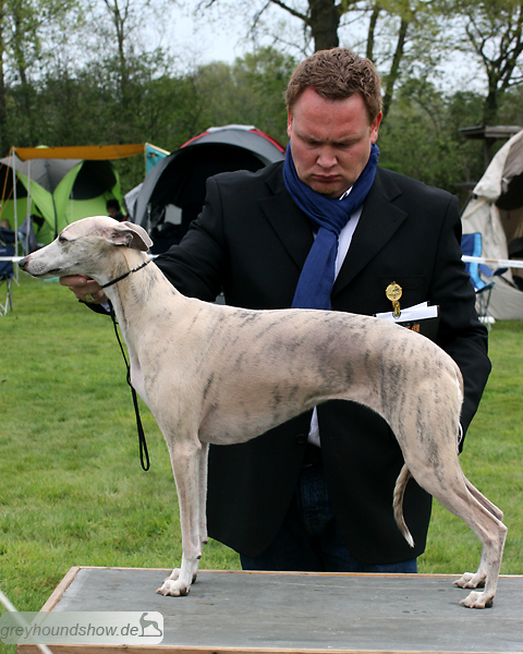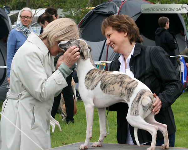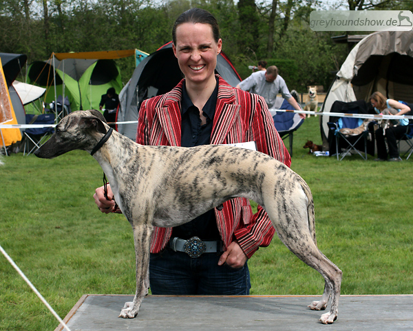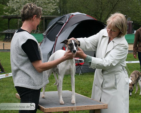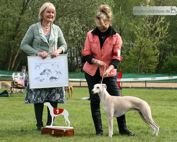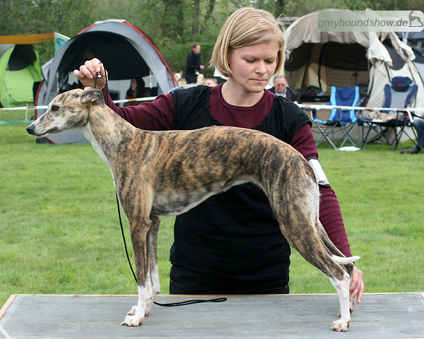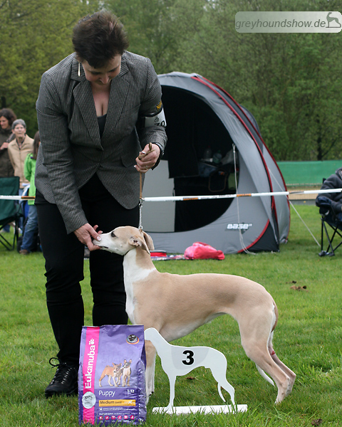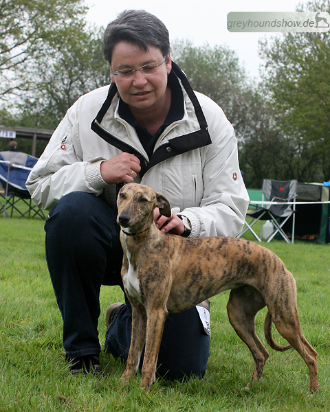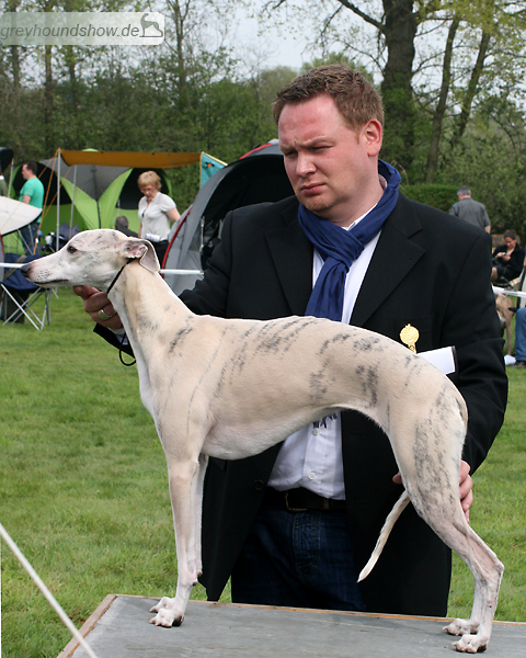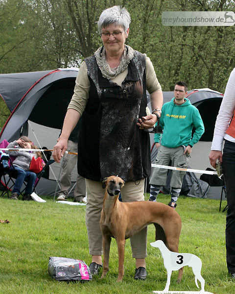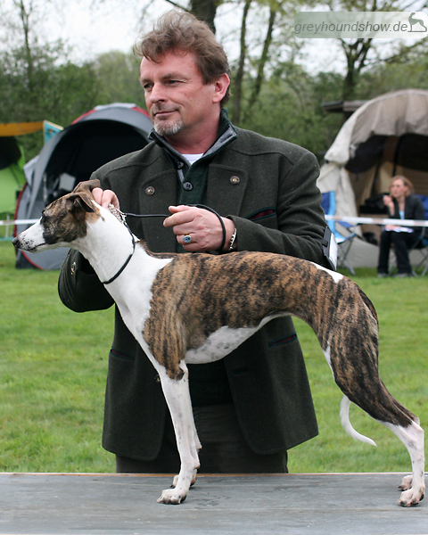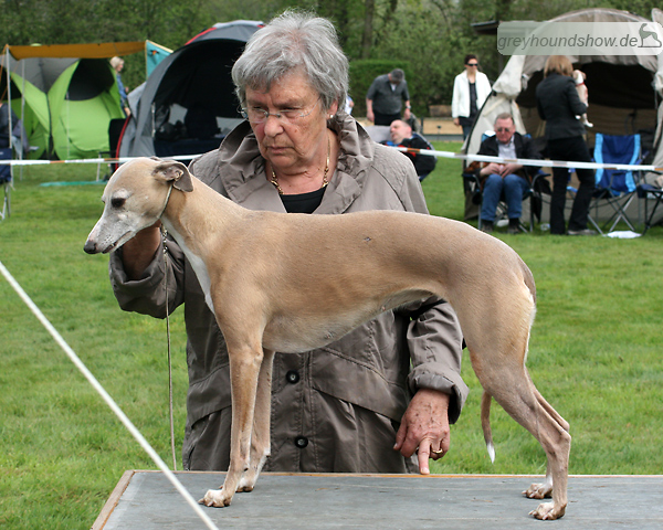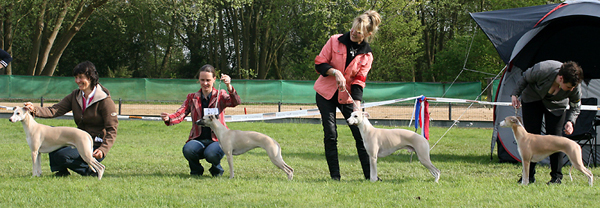 112 Whippets waren zur diesjährigen Whippet-Jahresausstellung am 29.04.2012 in Münster gemeldet. Die Hündinnen wurden von Miss Julie Meakin (Oakbark), die Rüden von Mrs. Cathie Brown (Bluestreak) gerichtet.