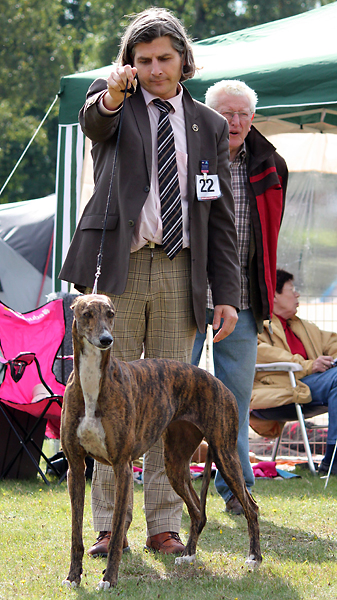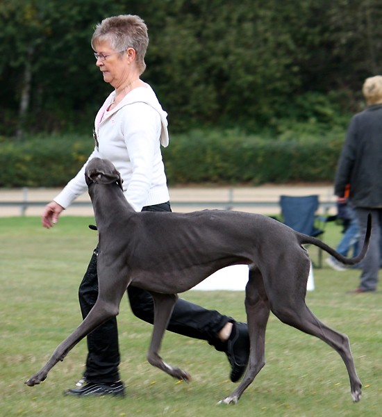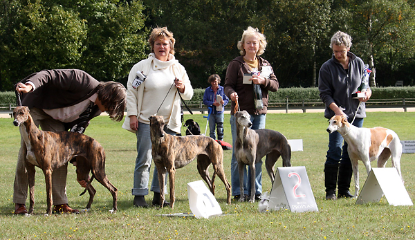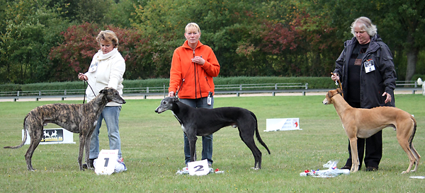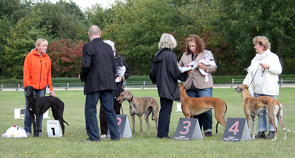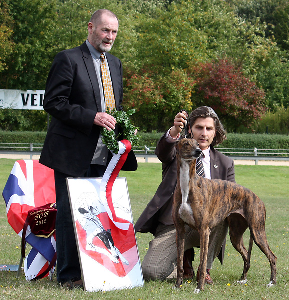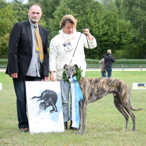 Die Greyhound-Enthusiasten trafen sich am 29.09.2012 in Gelsenkirchen, um ihre Hunde von Herrn Manfred Langer begutachten zu lassen, gemeldet waren mehr als 30 Greyhounds. Jahressiegerin u. BOB ging an „Ch. Happy Hunter’s Midsummer Night’s Dream“ (Ch. Sykings’s Excalibur x Ch. Happy Hunter’s Keep the Secret) von Familie Knauber, Jahressieger bei den Rüden wurde “Ch. Velvet’s Carlos Santana“ (Ch. Darkman Oropesa x MCh. Velvet’s Borboletta) von Frau Rediske-Akins.