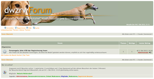 Weil mit dem DWZRV-Forum ganz unterschiedliche Zielgruppen angesprochen werden, ist das neue Online-Forum des führenden Verbands für Windhunde in einen allgemeinen und einen internen Bereich untergliedert: