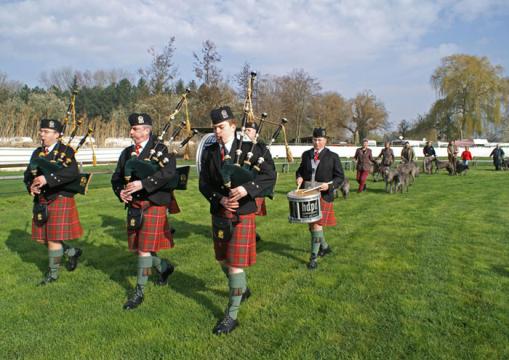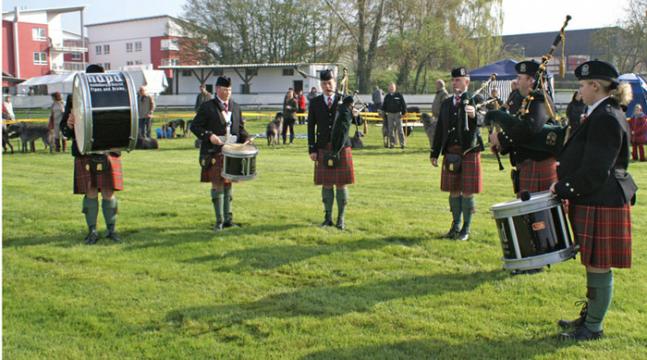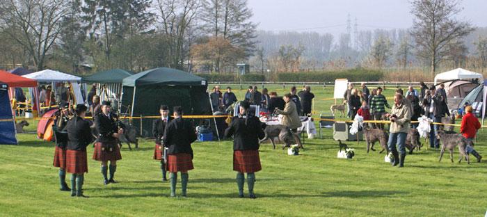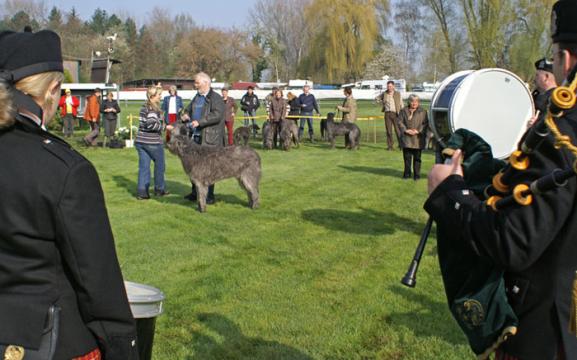 Traditionell wurde die Jahresausstellung eröffnet durch den Einmarsch der Deerhounds, zu den Klängen einer schottischen Trachtengruppe. Es war mal wieder ein ergreifender Anblick und Augenblick. Auch Petrus war uns wohl gesonnen, hatte er den Wasserkran doch am Abend vor der Ausstellung abgestellt.