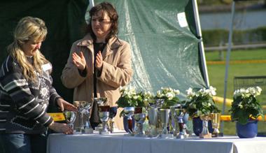 Dagmar Kenis Pordham erhielt traditionell ein Geschenk vom Meeting, und zwar ein Poster, gestaltet von Doris Katharina Benkwitz. Mrs. Pordham bedankte sich sehr herzlich, versicherte, dass es einen Ehrenplatz finden werde und fügte hinzu, dass sie den Tag sehr genossen hätte. Sie fand die Qualität der Hunde hervorragend. Die Kondition sowie die Fitness der Hunde fand sie außergewöhnlich.